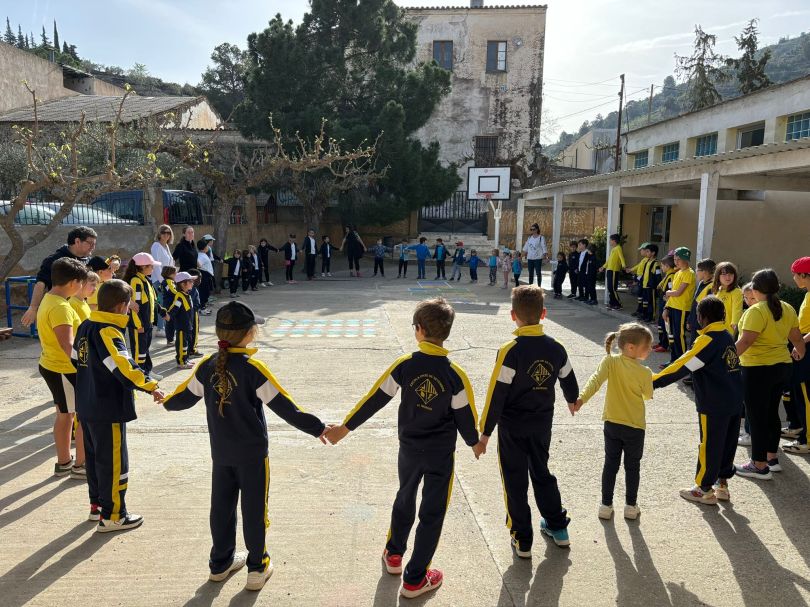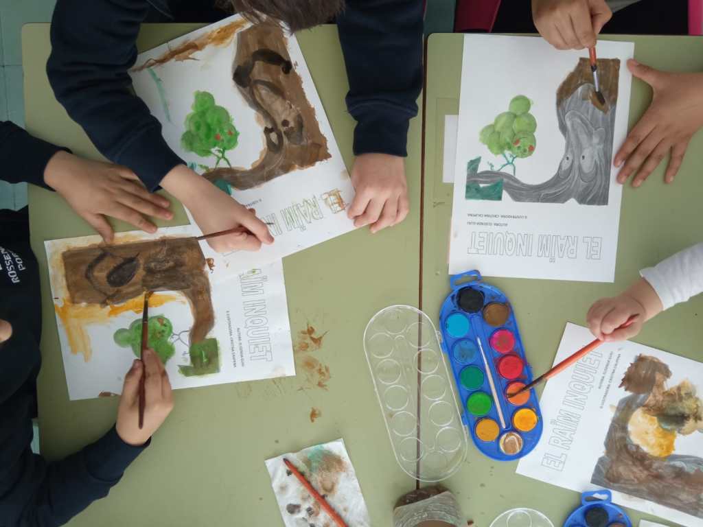 uns revolts envoltats de vinya. A la seva escola, Rossend Giol, els 11 alumnes que acull en total em reben amb alegria. Avui és un dia especial per vàries raons: s’acaba el trimestre, amb l’inici de les esperades vacances de Setmana Santa i, com ja es tradició, es trobaran les tres escoles que integren la zer del Baix Priorat: això vol dir la del Masroig, la de Bellmunt del Priorat i la de Porrera, que en aquesta ocasió farà d’amfitriona. Per a l’ocasió d’avui, l’equip directiu ha pensat una activitat literària i alhora artística; una trobada amb l’escriptora d’un conte que té molt a veure amb el territori que els envolta. L’escriptora soc jo, i el conte, “El raïm inquiet”, publicat per Arola editors, que explica a través d’un gotim impacient tot el procés i aventura de convertir-se en vi.