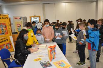 Un cop tot estava a punt, ben puntuals, van arribar els alumnes. Tots, amb il·lusió als ulls, amb ganes de fer-me mil preguntes i, sobretot, de passar una bona estona parlant dels llibres de “Les Històries de Labepra”.